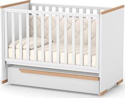 Кроватка имеет три уровня установки подматрасника. Боковая стенка подвижная, с надежным механизмом, её можно опускать или полностью снимать. Таким образом кроватка может превращаться в детский диванчик. На передней стенке есть место съемных спиц, предназначено для малышей которые научились уже ходить. Есть возможность установки системы укачивания (докупается отдельно).
